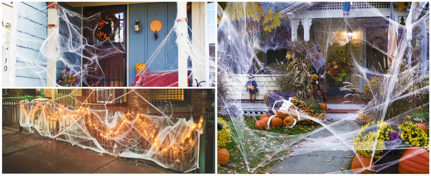 1 Set, 60 Soft Spider Webs Halloween Decorations Bonus With 10 Fake Spiders, Super Stretch Cobwebs For Halloween Indoor Outdoor
